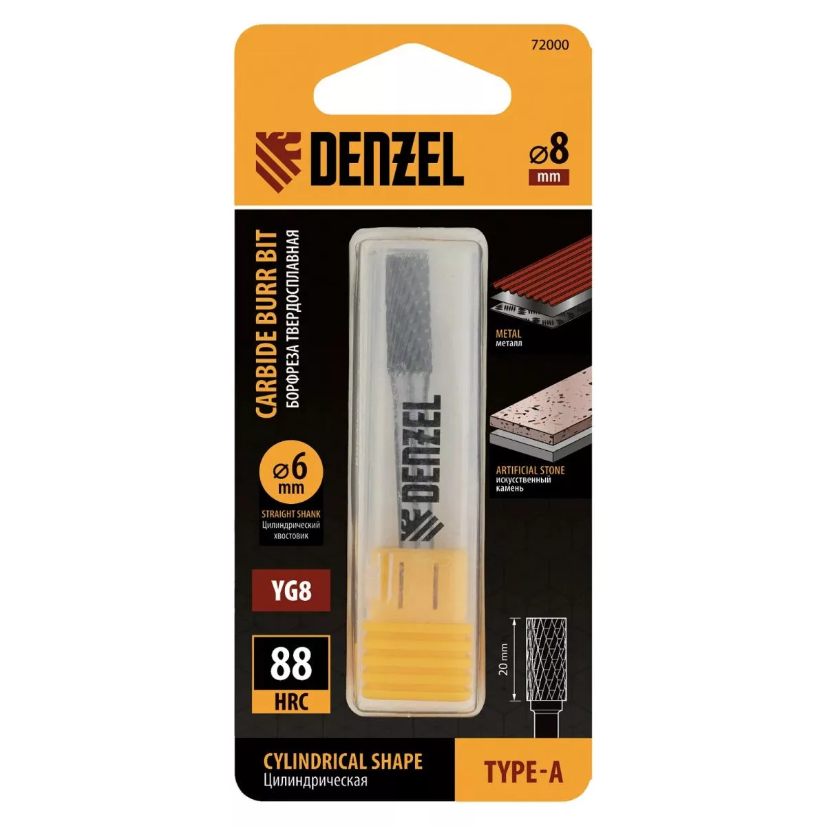 A Denzel (A típus) marószár a keményfém sorja, fém, edzett és rozsdamentes acél, sárgaréz, réz, bronz, öntöttvas, titán megmunkálására szolgál.