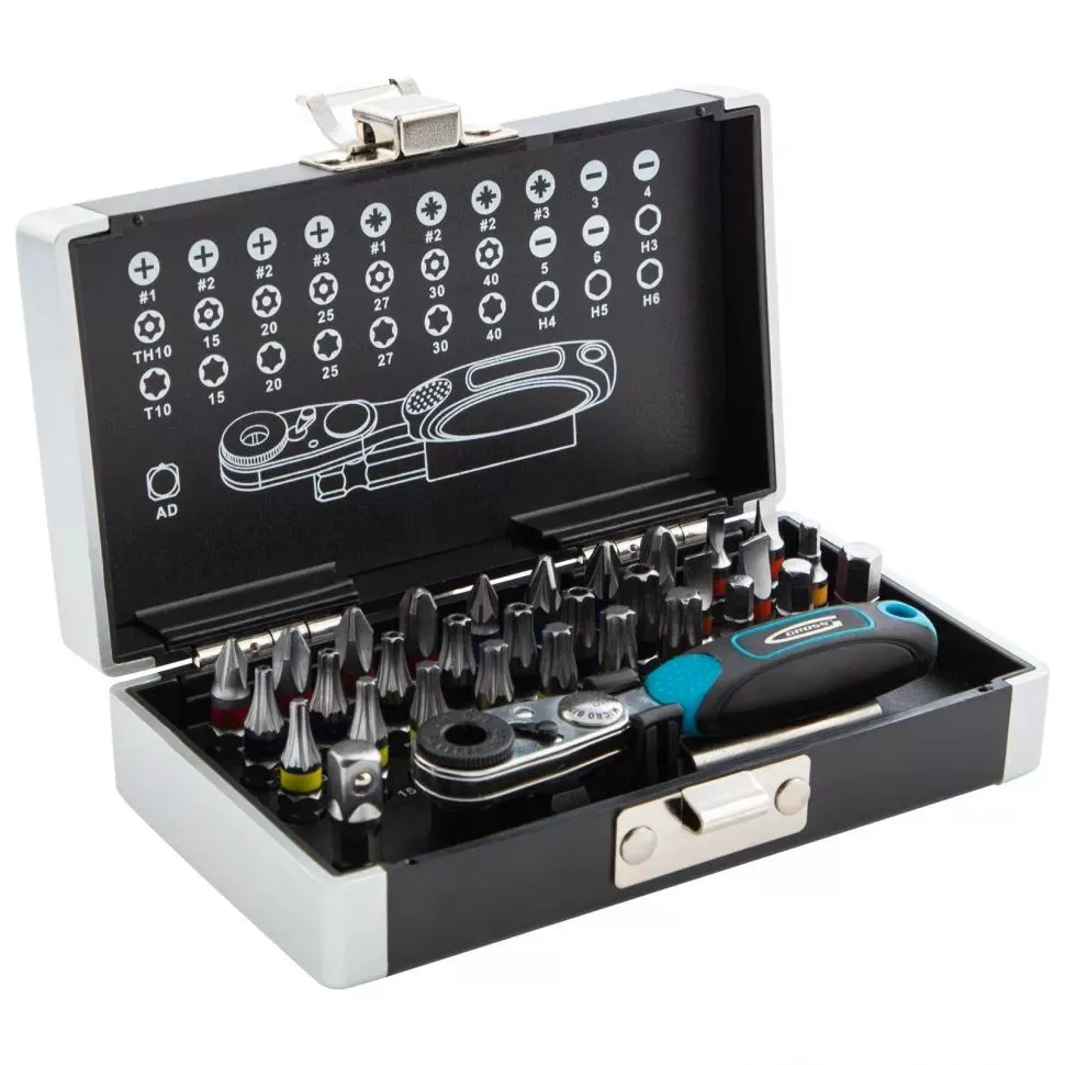 GROSS 1/4" bitkészlet racsnis hajtószárral kofferben 33 részes professional