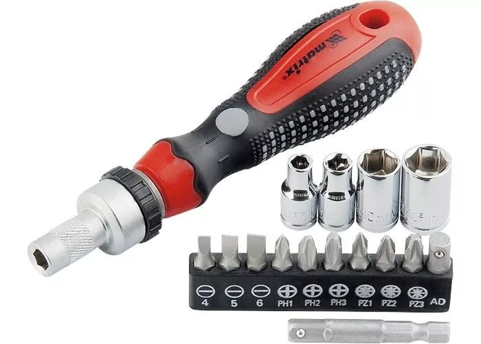 MTX 16 részes szett, racsnis marokcsavarozó irányváltóval, fejekkel