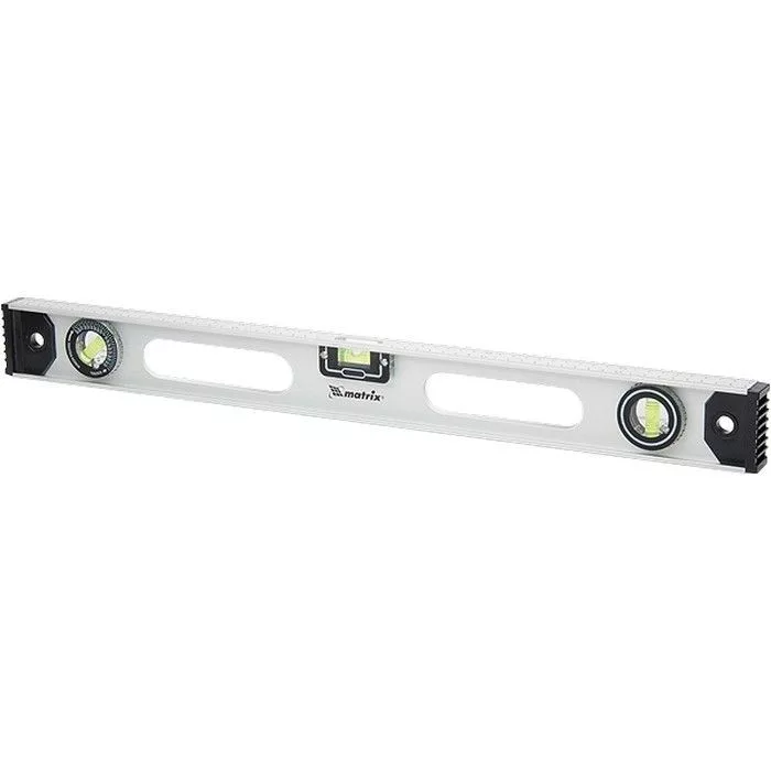 A vízmérték merevített alumínium I- profilból készült, eloxált bevonattal.