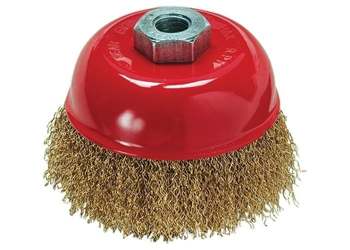 A kefe lágyított kreppelt acélhuzalból készül, sárgaréz bevonattal.