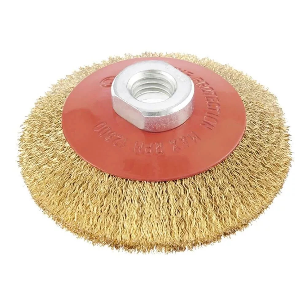 A kefe lágyított kreppelt acélhuzalból készül, sárgaréz bevonattal.