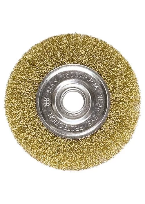 A kefe lágyított kreppelt acélhuzalból készül, sárgaréz bevonattal.