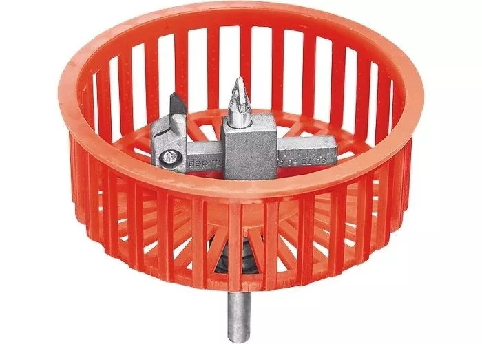 Kör alakú fúrót védõ mûanyag ráccsal tervezték lyukak fúrására üvegben, kerámialapokban és mûanyagban.