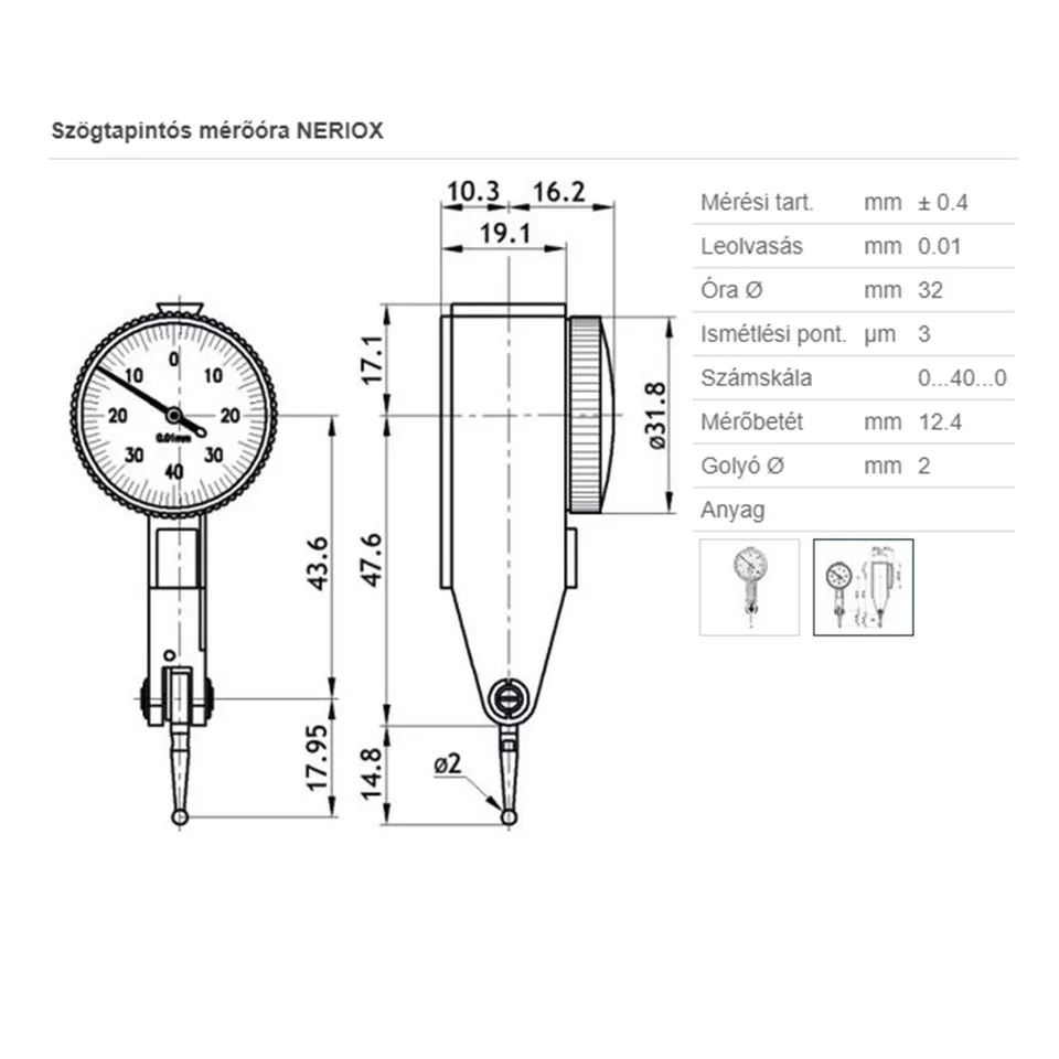 NERIOX szögtapintós mérőóra