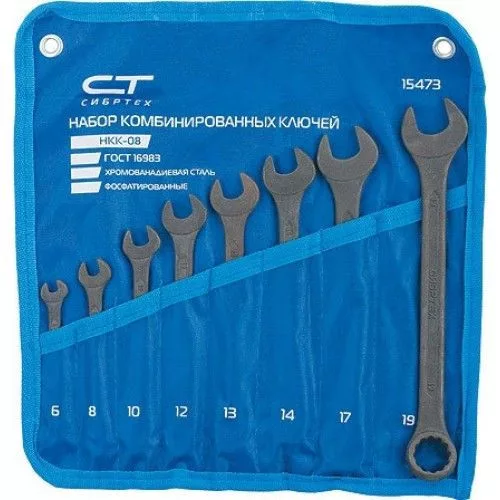 A Sibrtech 15473 kombinált csavarkulcsok, amelyek CrV acélból készültek, foszfátozott, GOST 16983, 8 db, 6-19 mm-es kötõelemek kicsavarására és csavarására tervezték, 6-19 oldalas vagy 12 oldalas fejprofillal. A gyûrûs torok belsõ felülete 12 arccal lehetõvé teszi, hogy a kulcsot csak 30 fokkal forgassa el, ami megkönnyíti a szûk körülmények között végzett munkát. A kulcsokat lakatos és szerelési munkákhoz használják, hasznosak lesznek az építésben, a javítások során, és hasznosak lesznek otthon vagy a garázsban is.
