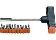 A csavarhúzó tokja rekesszel rendelkezik a bitek tárolására.