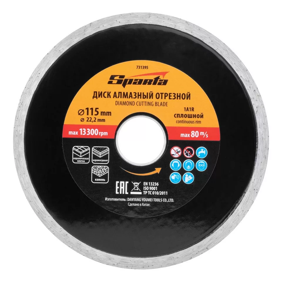 A SPARTA 115 mm-es tömör gyémánt vágókorong precíz és tiszta vágást biztosít kerámia, porcelán kőagyag, csempe és márvány anyagok esetén.