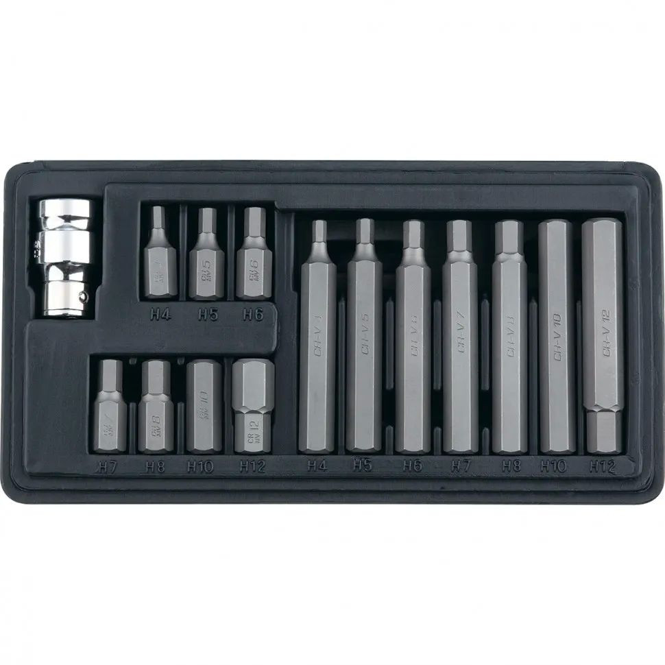 Csavarbehajtó bit készlet "HEX", hex nyél 1/2", CrV, 10 mm, 15 darab, kofferben//Stels
