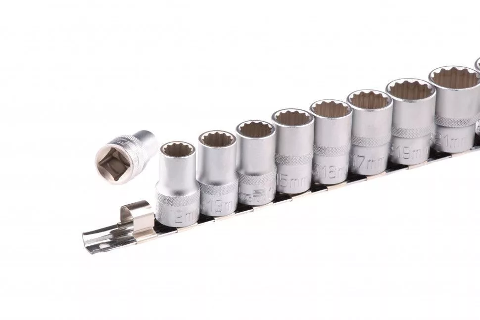- dodekaéder (Bi-hexagonal) kialakítás: A 12 pontos aljzatok nagyobb érintkezési felületet biztosítanak a rögzítõelemekkel, ami csökkenti a deformáció kockázatát nagy terhelés esetén. A 12 pontos pofának köszönhetõen a fejek lehetõvé teszik a szûk helyeken történõ munkát, kisebb elfordulási szöggel (30 fok) elforgatva a rögzítõket, mint a 6 pontos pofával rendelkezõ modelleknél. Alkalmas a 4 oldalú csavarok megfogására is.