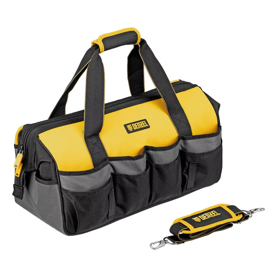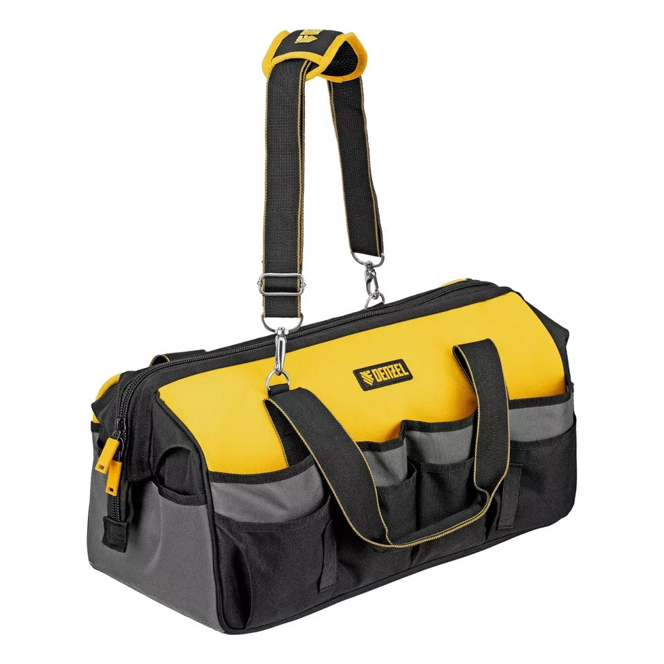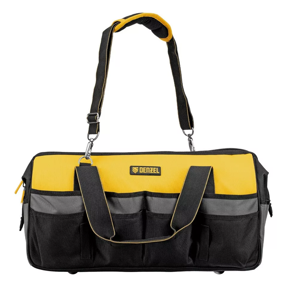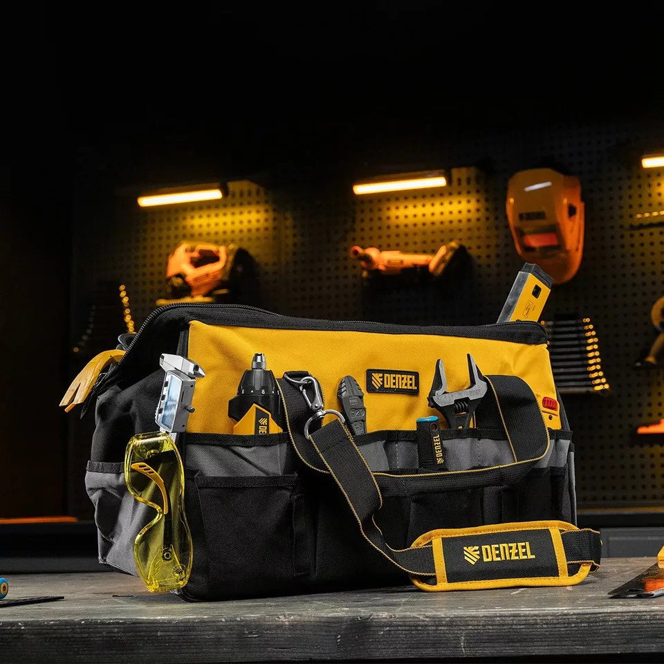 A DENZEL 20 zsebes szerszámos táska nagy kapacitású és jól rendszerezhető megoldást kínál szerszámok, rögzítőelemek és kisebb alkatrészek tárolására és szállítására.