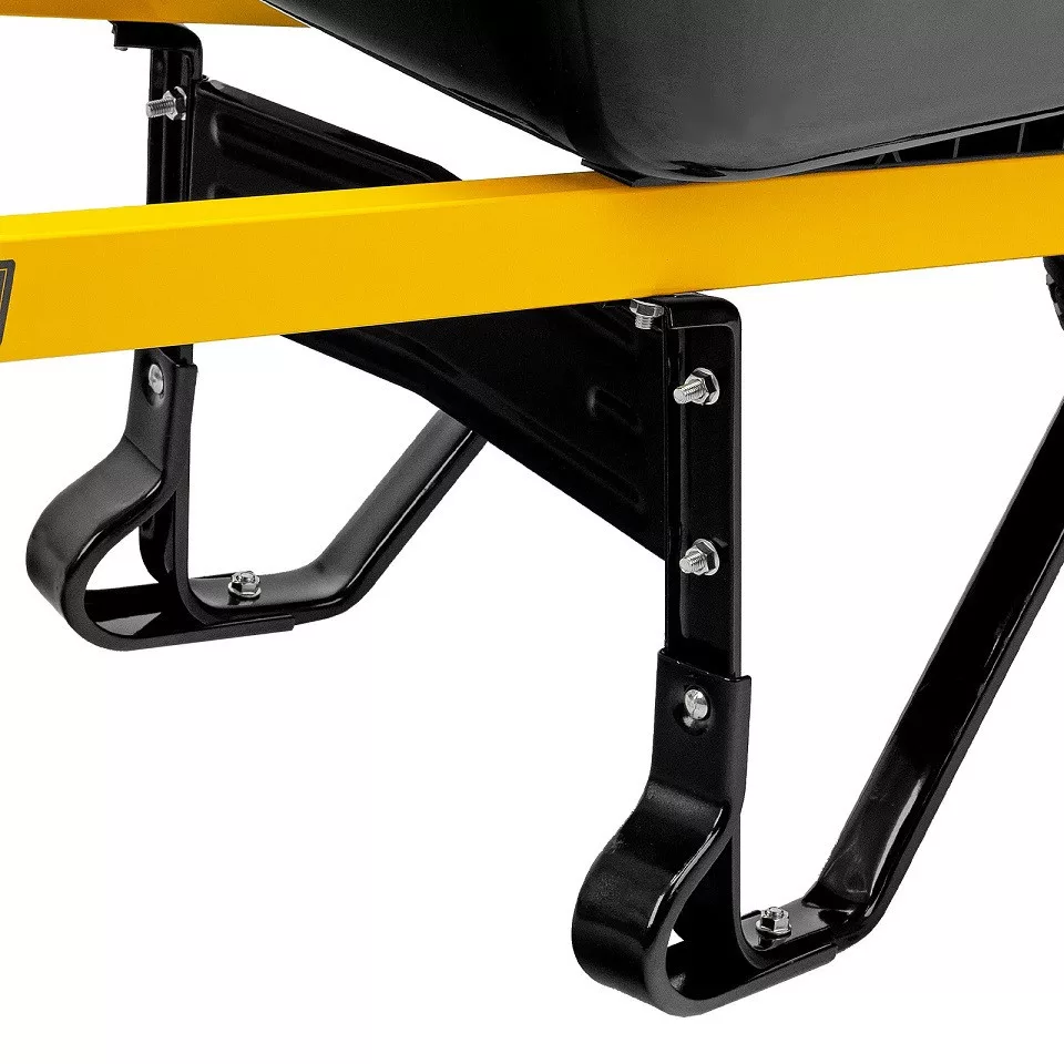 Az elülső kerék íves kialakítása biztosítja a könnyű kirakodást, míg a vázon található hurok lehetővé teszi, hogy szükség esetén egy második személy is vontathassa a talicskát.