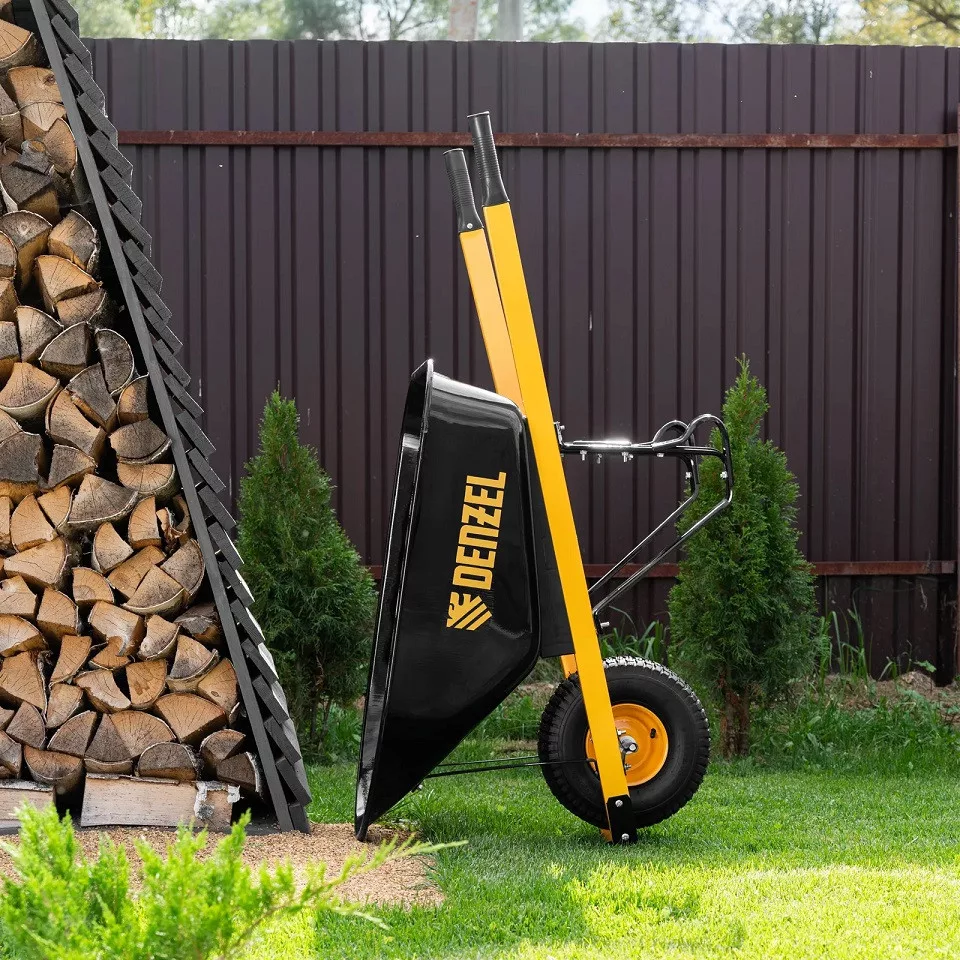 A DENZEL építőipari talicska kifejezetten professzionális használatra készült, akár 230 kg teherbírással és 140 literes űrtartalommal, így ideális építkezéseken, mezőgazdasági munkák során vagy ömlesztett anyagok szállítására. A talicska robosztus konstrukciója az 50 × 25 mm-es profilú, 1,2 mm falvastagságú keretnek, a széles tartóknak, a megerősített kereszttartónak és az erős ívnek köszönhetően biztosítja a stabilitást és ellenáll a nagy terheléseknek.