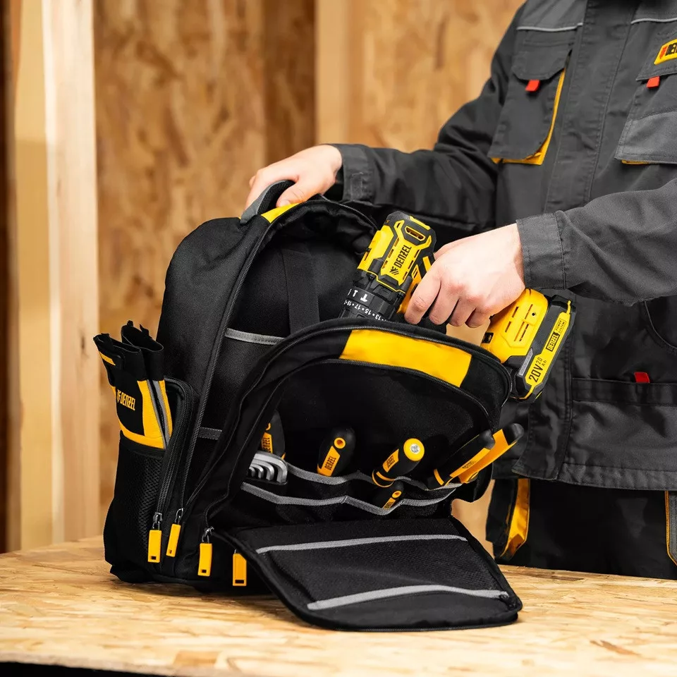 A DENZEL 26 zsebes szerszámos hátizsák egy rendkívül praktikus és tartós kialakítású tárolómegoldás, amelyet kifejezetten mobil szerelők és technikusok számára terveztek.
