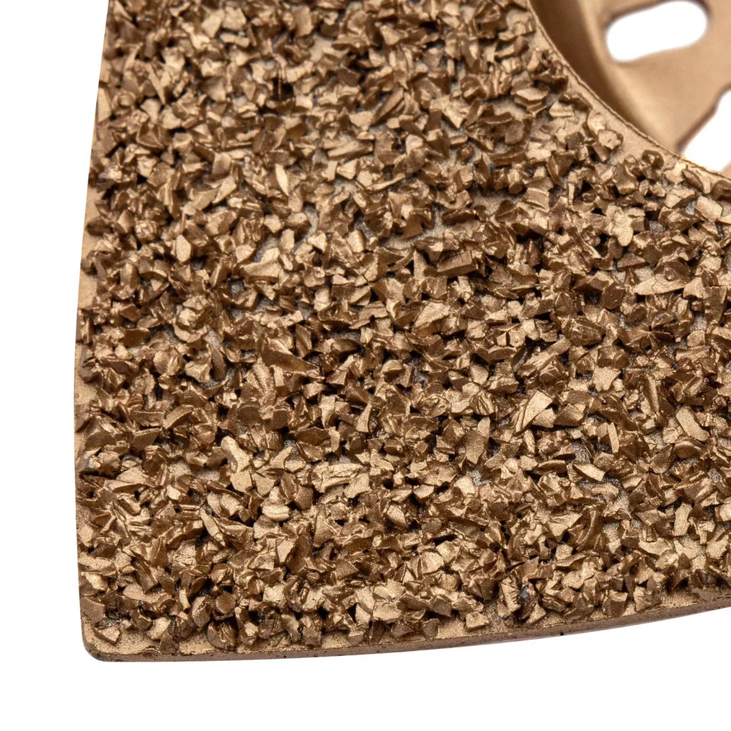 A feltét HM (keményfém) bevonattal ellátott, magas mangántartalmú szerszámacélból készül, amely biztosítja a hosszú élettartamot és az intenzív igénybevétellel szembeni ellenállást. Az ívelt, delta forma megkönnyíti a nehezen hozzáférhető sarkok és élek elérését, míg az univerzális befogórendszer lehetővé teszi a legtöbb MFI típusú gépre történő felszerelést. A testen található speciális jelölések segítik a gyors azonosítást és a kényelmes használatot.