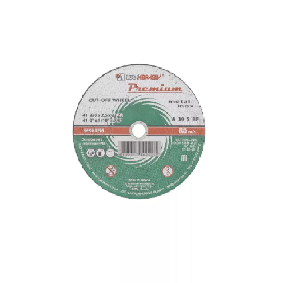 A Luga fém darabolótárcsa 230mm átmérőjű M14 (22,2mm) tengelyméretű szerszámokkal kompatibilis, sarokcsiszolók karimájára szerelhető.