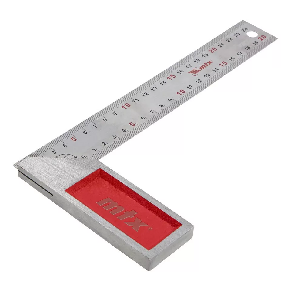 Az MTX 250 mm acél derékszög, kétoldalas mm/Col beosztással precíz mérési eszköz minden barkács- és szakemberi munkához.