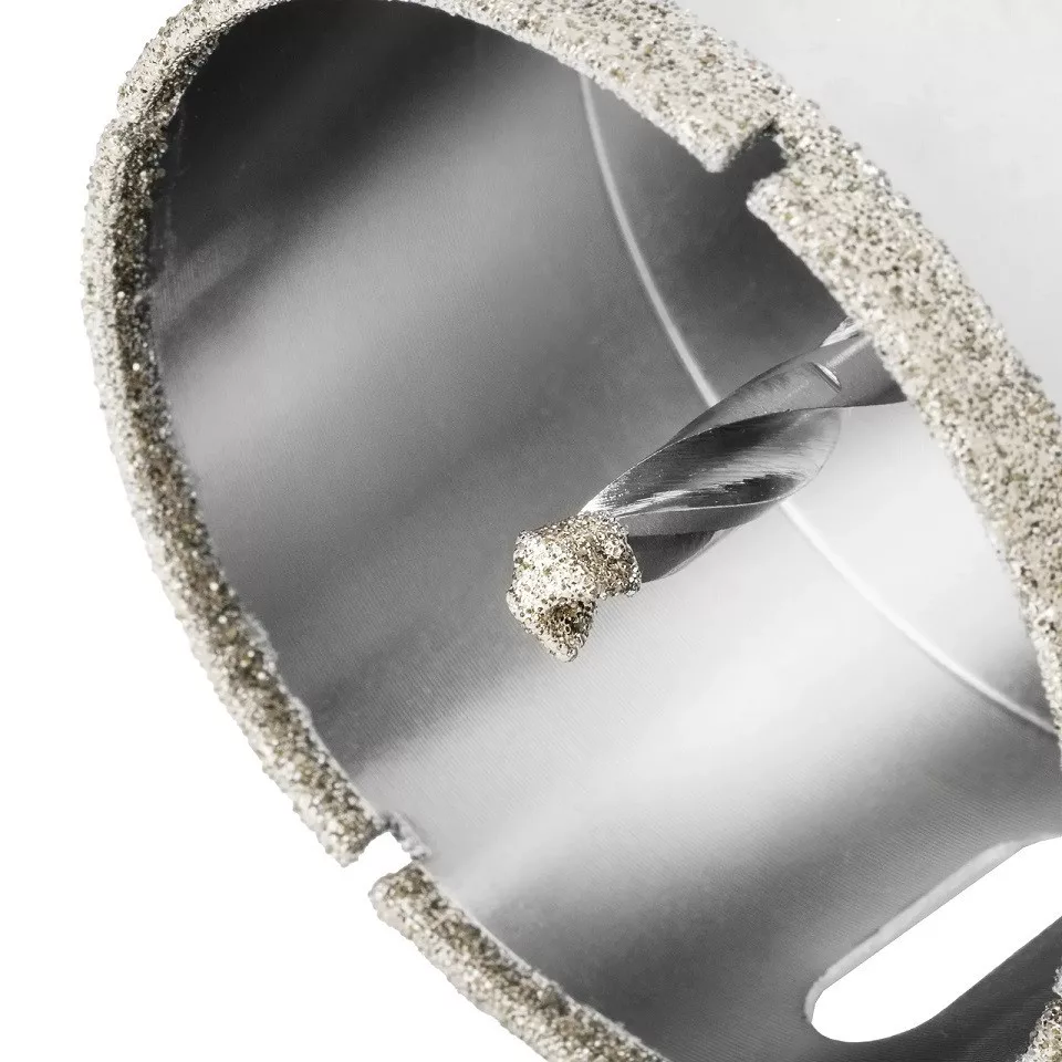 Az MTX gyémánt magfúró készlet két darab, 68 mm átmérőjű fúrót tartalmaz, amelyek ideálisak porcelán kőagyag, kerámia csempe és üveg nagy átmérőjű, pontos és tiszta furatainak kialakításához.
