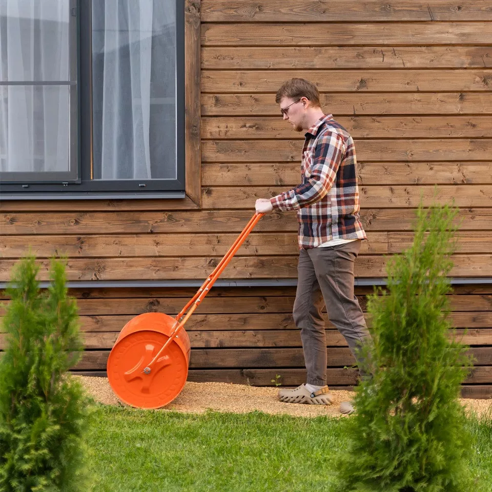 A PALISAD 70 L gyephenger / talajhenger praktikus és hatékony eszköz a gyep egyengetésére, tömörítésére és előkészítésére, amely segít szép, egyenletes pázsit kialakításában.