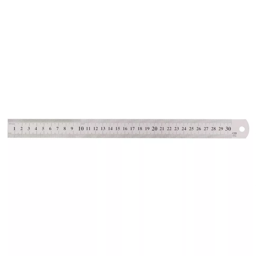 A mérõ vonalzó szerszám ötvözött acélból készül, egyik oldala lekerekített, lyukkal akaszásos tároláshoz.