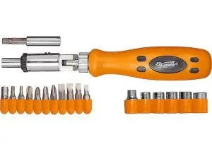 19 darabos, csuklóval, bitekkel és fejekkel ellátott, megfordítható csavarhúzót