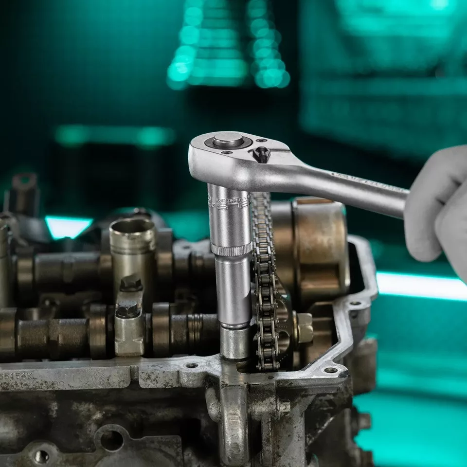 A dugókulcs kiváló minőségű króm-vanádium (CrV) acélból készül, és 42 HRC keménységre edzett, így nagy terhelés mellett is megbízható és tartós.