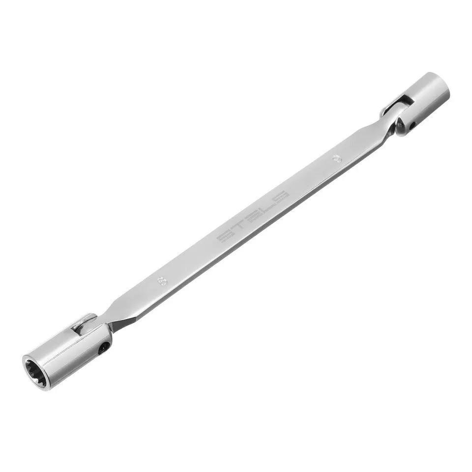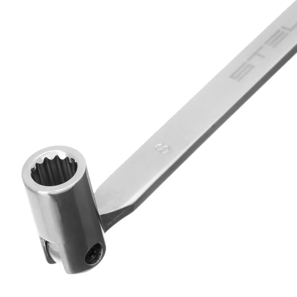 A STELS 8x9 mm csuklós csőkulcs egy precíz és tartós megoldás a nehezen hozzáférhető csavarok kézi meghúzásához vagy lazításához.