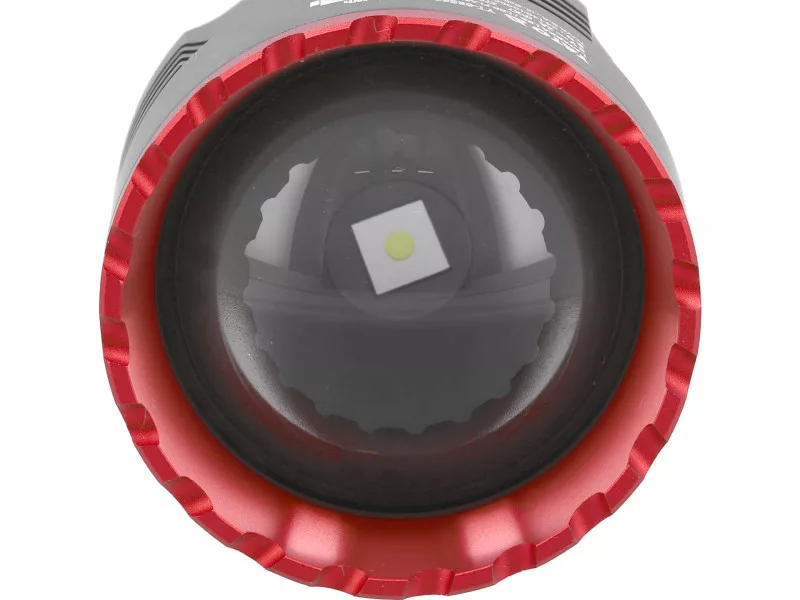 Tartós alumínium zseblámpa, öt móddal, amelyek lehetővé teszik a fény tevékenységhez és az akkumulátor szintjéhez való igazítását. A 10 W-os SMD LED akár 1000 lm fényt bocsát ki, akár 60 órás világítási idővel és akár 920 m hatótávolsággal. A fény sugarának szélessége a fejen található zoom funkcióval állítható be.