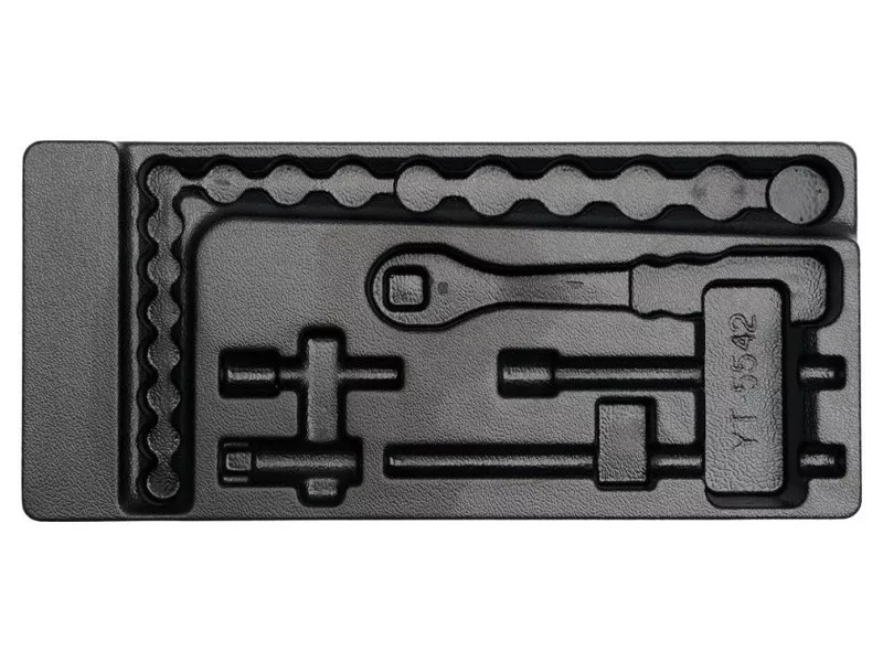 Üres fiókbetét a következők tárolásához: 3/8" (9,5 mm) kulcsfejek: 6, 7, 8, 9, 10, 11, 12, 13, 14, 15, 16, 17, 18, 19, 20, 21, 22 mm 3/8" hosszabbító 3/8" kardántengely T-típusú fogantyú 3/8" (9,5 mm); (198 mm) ratchet 3/8" (9,5 mm); (200 mm)