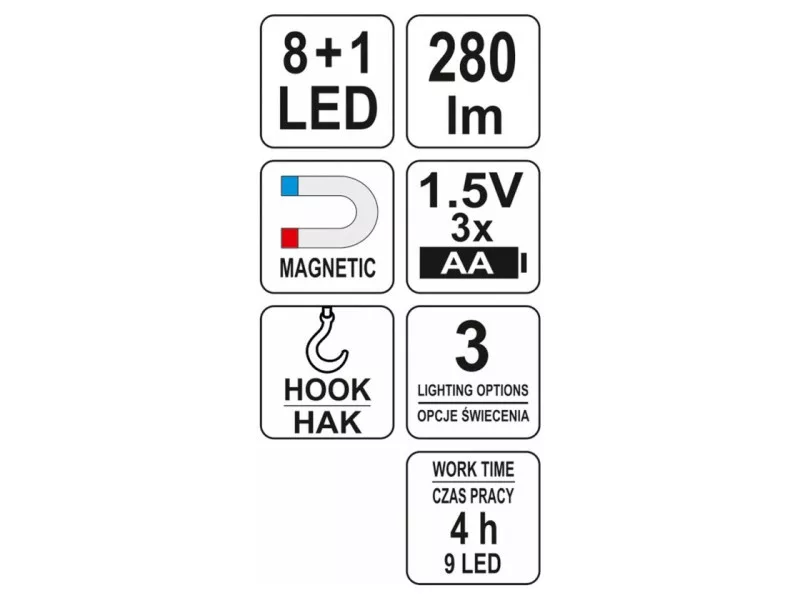 Diodás műhelylámpa, 8+1 LED-del. 280 lm fényerőt generál.