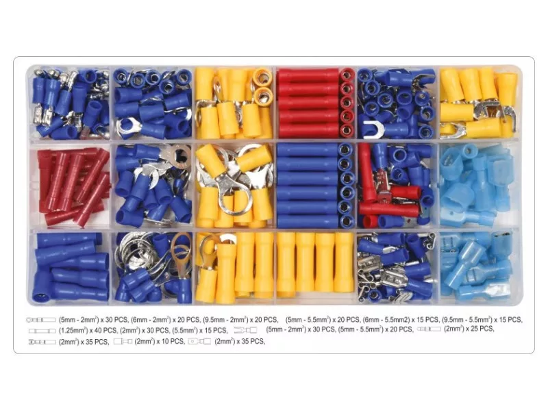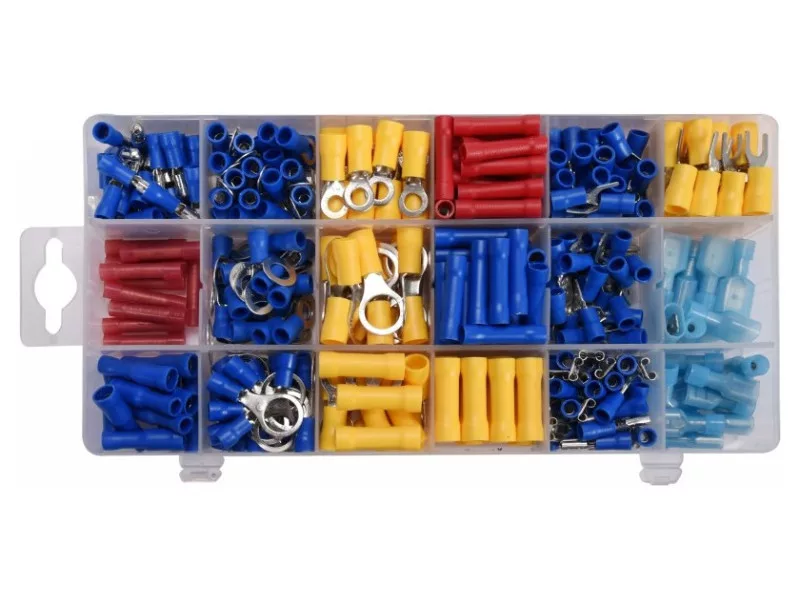 Univerzális készlet elektromos csatlakozókból és dugókból, amelyek használhatók elektromos szerelőknek és autószerelőknek egyaránt, autókon, teherautókon és építőipari gépeken.