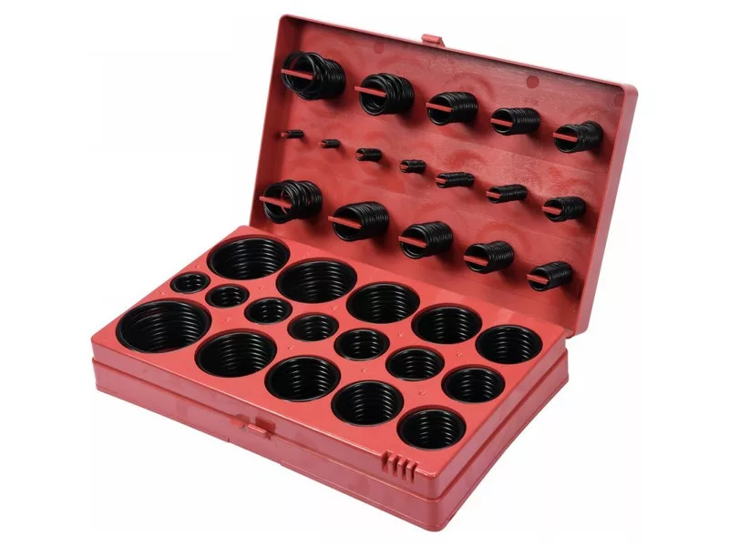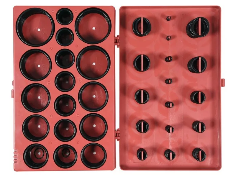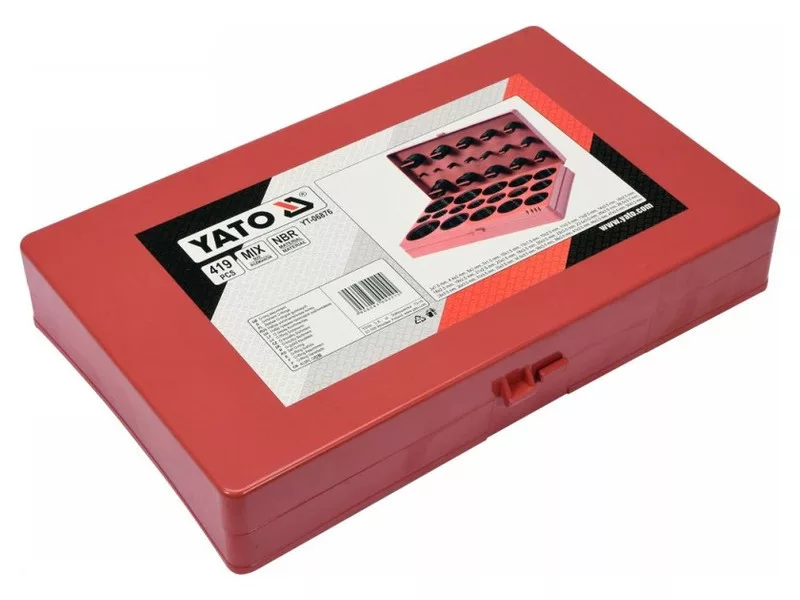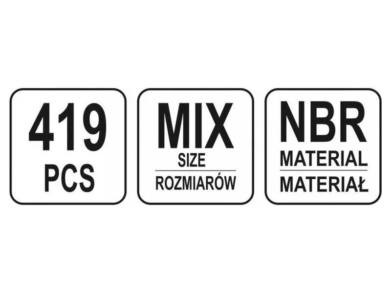 Egy 419 darabos OGYŰRŰ szett, NBR-ből készült. A készletben méretek találhatók 3x1,5 mm-től 50x3,5 mm-ig. Az egész egy praktikus "válogató" csomagolásban helyezkedik el.