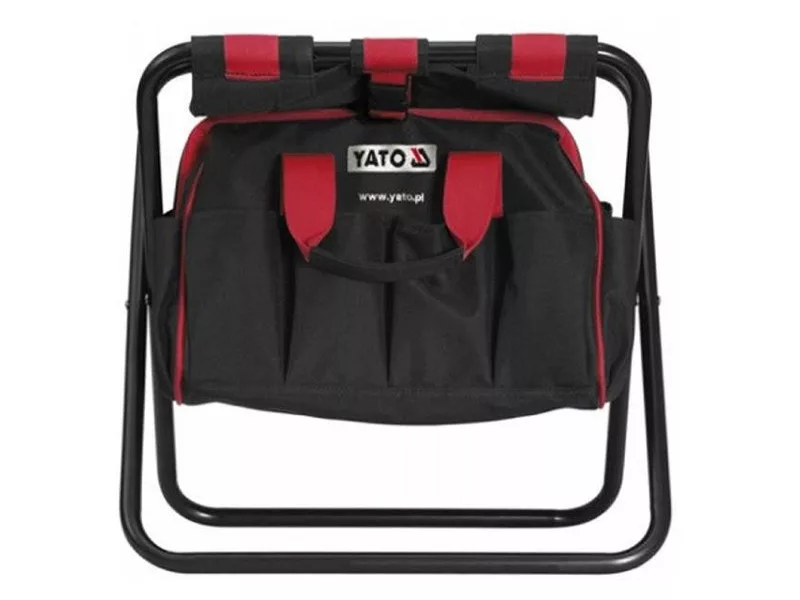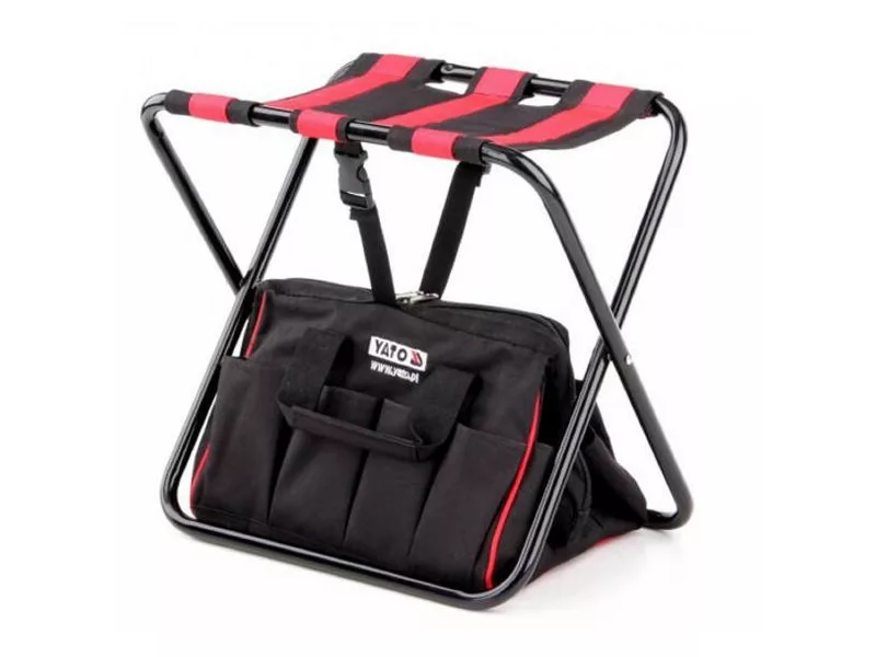 A táska össze van kapcsolva egy összecsukható székkel, úgy, hogy ráülve a táskát használhatja kéznél lévő műhelyként.