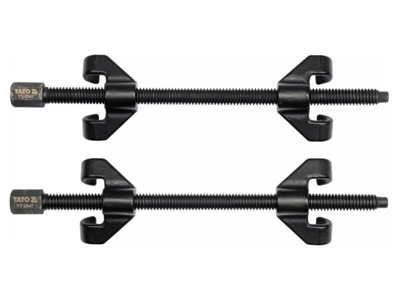 Professzionális rugóhúzók 355 mm hosszúságban, kifejezetten a MacPherson rudakban, többek között, található rugók biztonságos és kényelmes beszerelésére és eltávolítására tervezve. Elengedhetetlen minden autószerelő műhelyben. A munka biztonságos, köszönhetően a speciálisan kialakított, kétágú fogantyúnak.