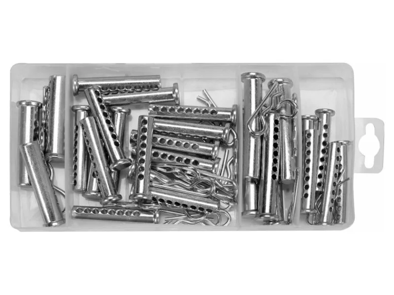 Rugós csapok és lyukkal ellátott csapok készlete, amelyeket rózs elemek összekapcsolására használnak.