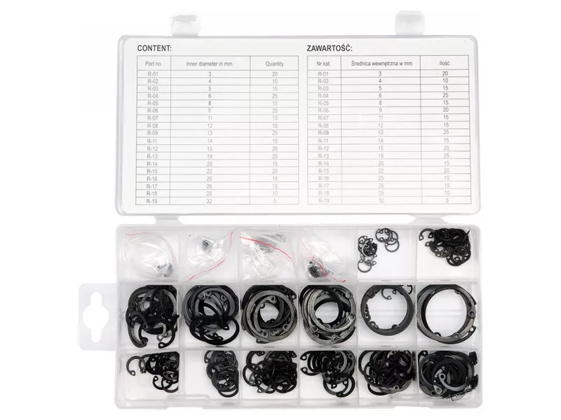 Professzionális 300 belső Seger gyűrű készlet. A készlet tartalmaz 18 különböző méretű gyűrűt. Minden egy szilárd szervezőben. Nélkülözhetetlen egy autószerelő műhelyben, mezőgazdaságban vagy iparban.