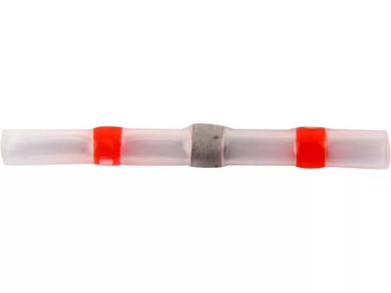 Átlátszó hő zsugorcsőYT-81441 középen egy ón gyűrűvel és a szélein két hő ragasztó gyűrűvel, ami tovább tömíti a csatlakozást.